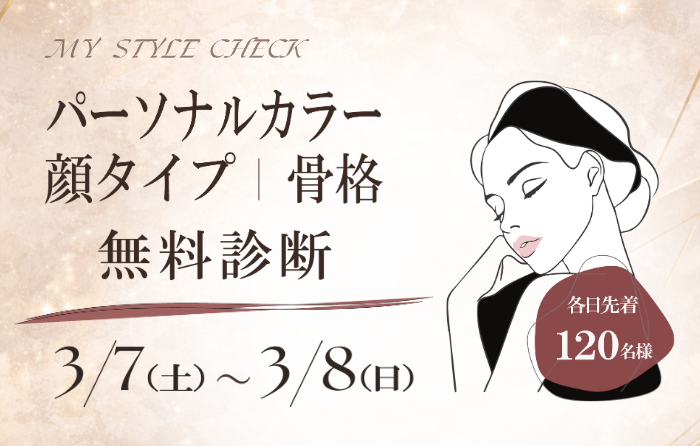 パーソナルカラー・顔タイプ・骨格 無料診断【3/7(土)・3/8(日)】