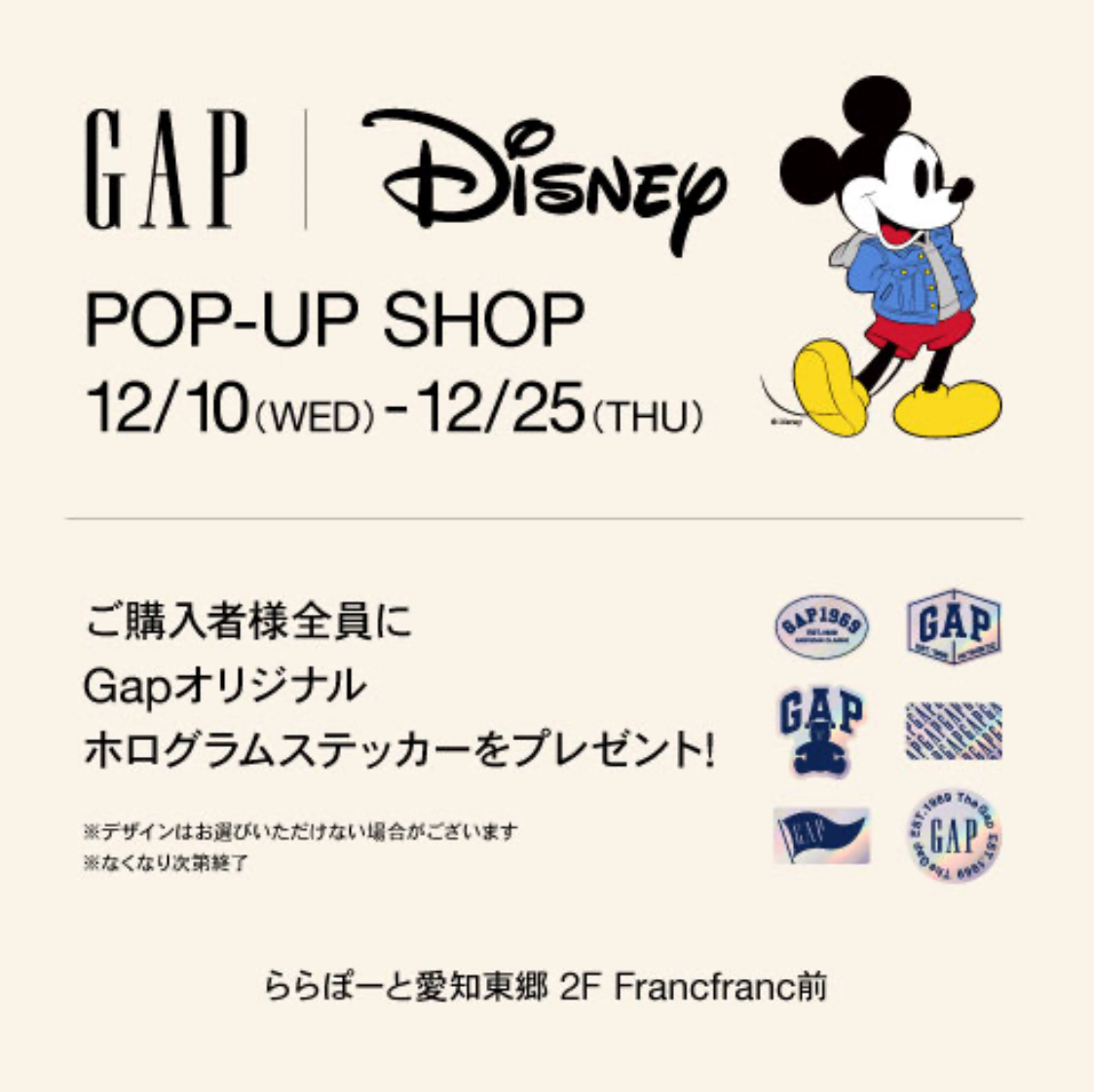 - 『Gap×Disney POP-UP SHOPオープン』12/10(水)~12/25(木)