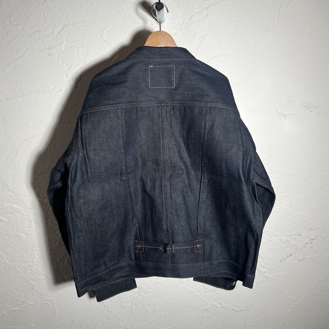 コンパクトなレギュラーカラー、胸にはシングルポケット、動きやすさに配慮したフロントプリーツなど、現代でも色褪せないデニムジャケットのデザインを確立。