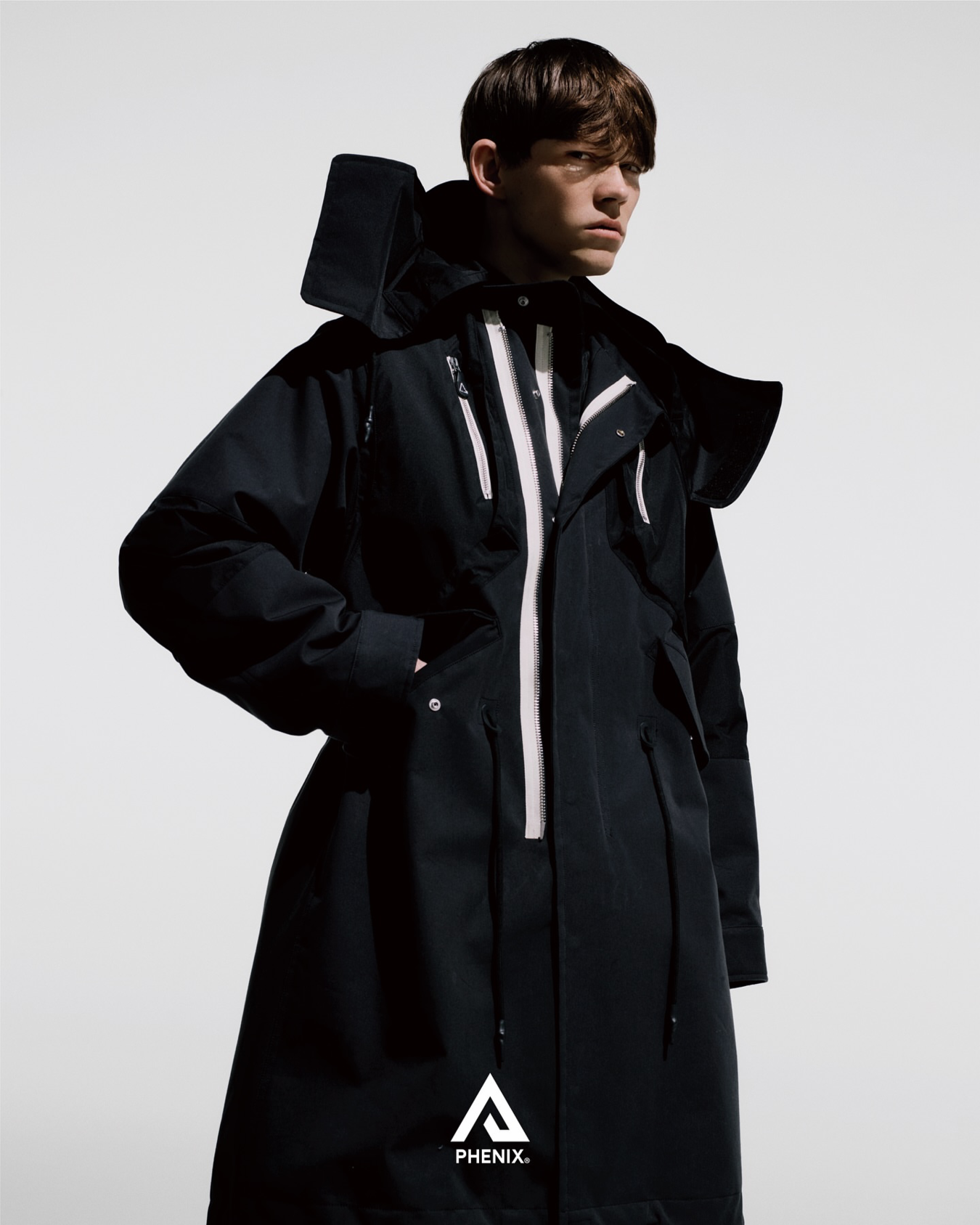 PHENIX独自開発の撥水、防風素材を主素材として使用した使用したフィッシュテールパーカー