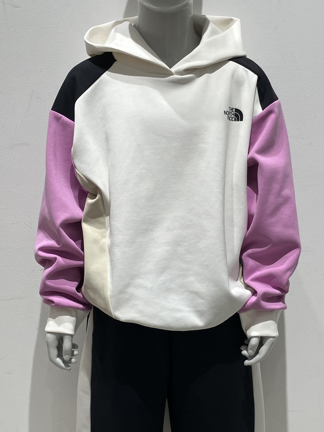 ポップなカラーブロックが目を引くワイドシルエットのスウェットフーディとパンツをセットで着ることで、統一感のあるトレンドスタイルに。