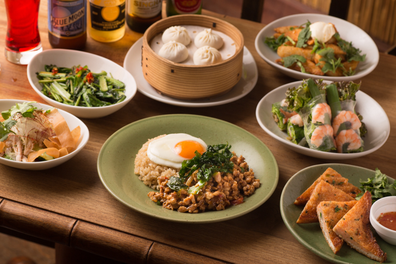 - 鶏肉のガパオ炒めご飯、ベトナム風生春巻き“ゴイクン”、タイ海老トースト等