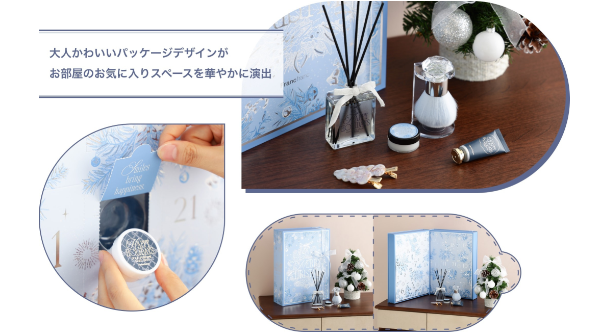 アドベントカレンダーでしか手に入らない限定商品も封入したホリデーシーズンにぴったりのアイテムです。