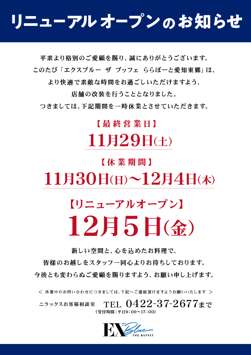 新しい「エクスブルーザブッフェ」で、大切な人と心温まるひとときをお過ごしください