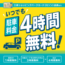 - 【三井ショッピングパークカード《セゾン》会員】いつでも!駐車料金4時間無料!