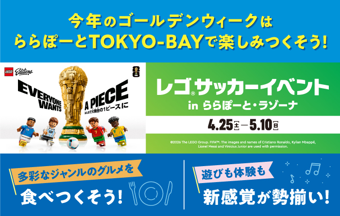 - 今年のゴールデンウィークはららぽーとTOKYO-BAYで楽しみつくそう!