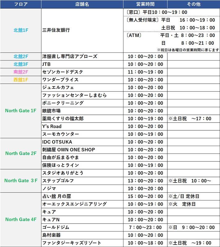 【年末年始】営業時間が異なる店舗(North Gate)のご案内