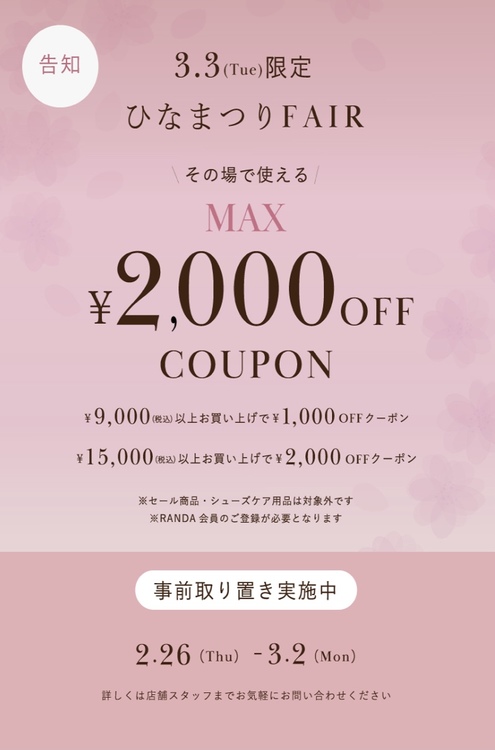 新作商品最大2000円OFFのひなまつりフェア - RANDA