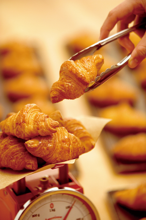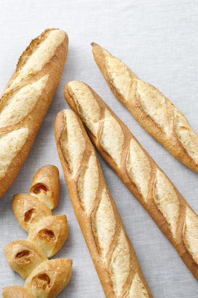 - 「バゲット」は『棒』という意味のフランスパン。薄くパリッとした皮、大小ふぞろいな気泡と光沢のある断面、口に入れると最後に十分な発酵からくるコクが感じられるのが理想です。中身より皮が好きな