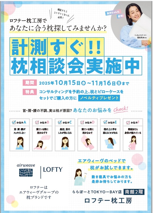 ロフテー枕工房はエアウィーヴグループの枕専門ブランドです。ピローフィッター(R)が首のカーブの深さをお測りし、お客様一人ひとりに合った枕選びのお手伝いをいたします。