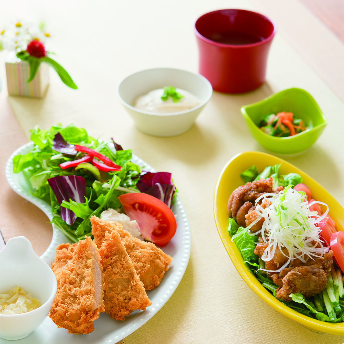 - お肉の定食、お魚の定食、サラダの定食、お鍋の定食、うどんの定食、キッズメニュー、スイーツ、ソフトドリンク、アルコール