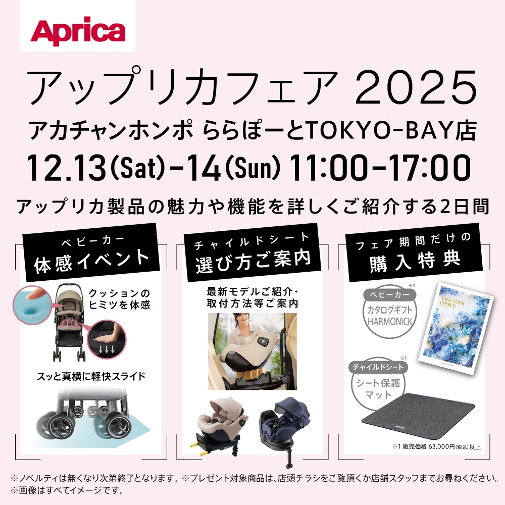 12/13(土)・14(日)11:00~17:00、ベビーカー・チャイルドシート売場にてアップリカフェアを開催いたします!