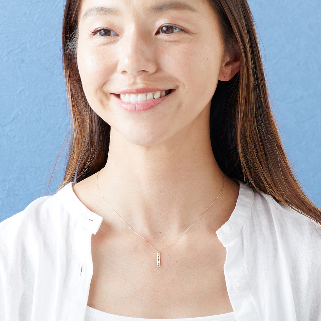 コーディネートに合わせて長さを変えたり、長めのネックレスと重ね付けも可能です。