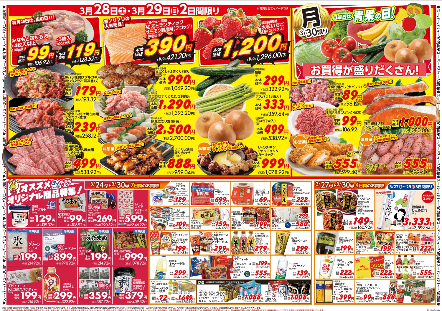 ス-パ-バリュ-創業30周年 大創業祭 開催!のご案内!