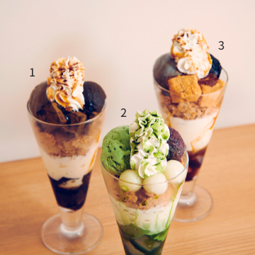 話題のほうじ茶、定番の抹茶、ゴマ好きにはたまらない黒ごまも。どのパフェも美味しくて幸せな時間♪