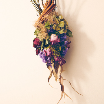 そろそろインテリアも秋らしく模様替えしたい。お店でスワッグに向いてる秋色のお花を相談して、手作りに挑戦。フレッシュからドライフラワーへの様変わりも楽しみ。