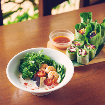 野菜たっぷり冷製トムカーガイと7種の野菜とアボカドの生春巻き(セット) 1,300円(税込)※平日限定(14:30~18:00) ※期間・数量限定