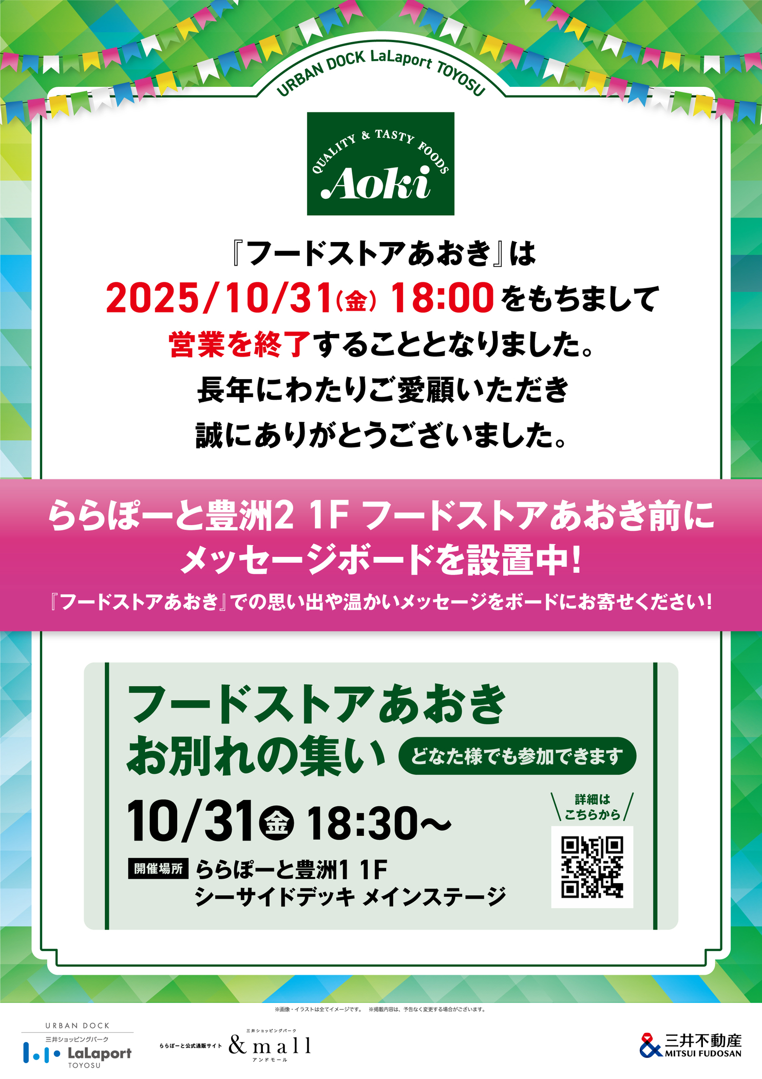 10月10日(金)より〈ららぽーと豊洲2〉1F フードストアあおき前にメッセージボードを設置中!