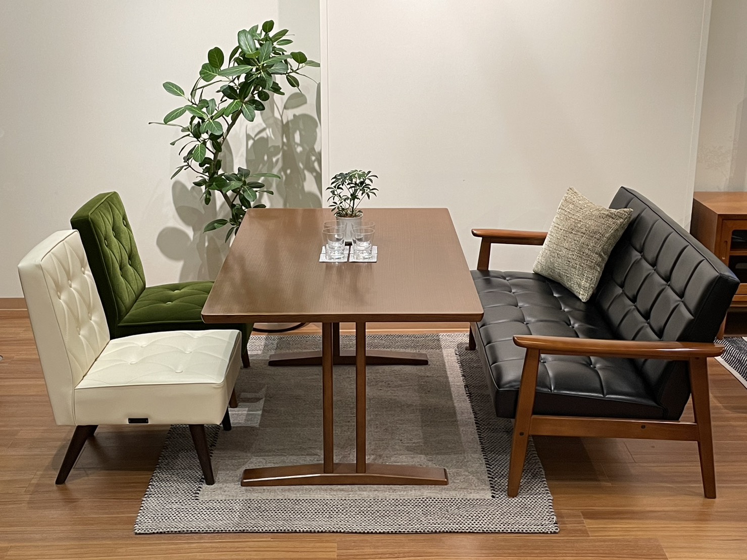 スタンダードアイボリーのみ脚色にカフェブラウンを採用し、アイボリーの張地が引き立つ組み合わせとなっています。