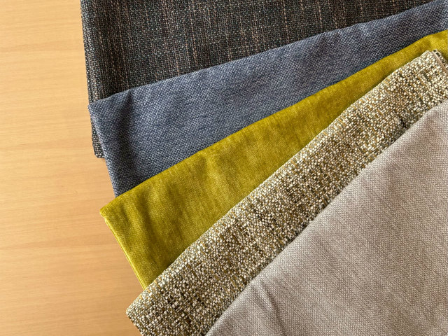 カリモク60豊洲店では、フジエテキスタイルの「Form」コレクションから生地を選定し、製作したクッションカバーをご用意。
