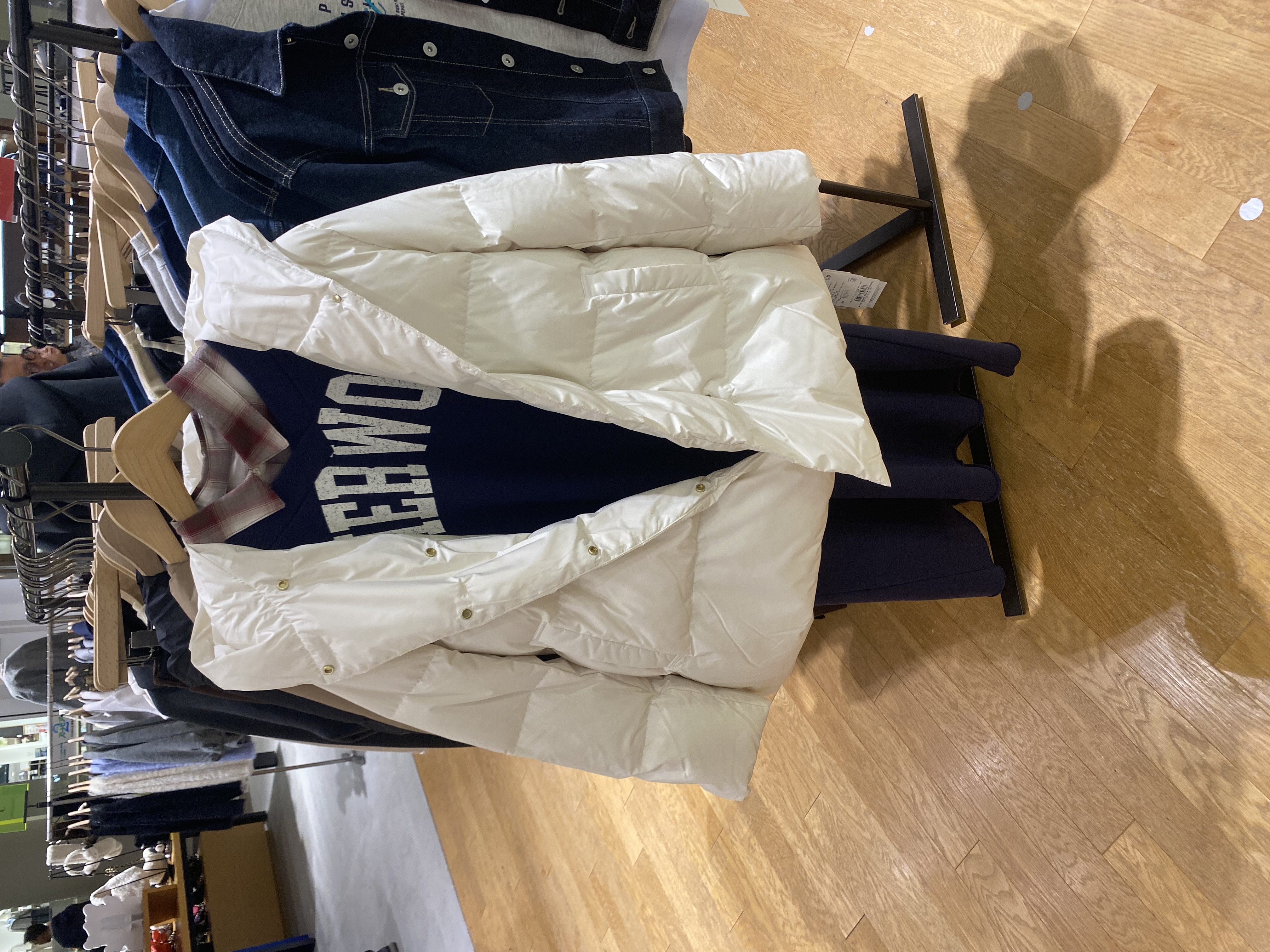 白のミドルダウンコート