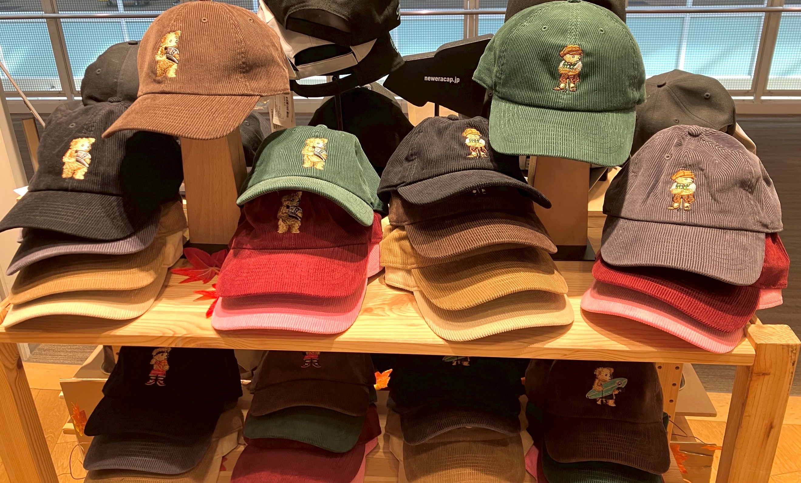 また他にも、ベア刺繍のバケットハットやフラットバイザー、通年使えるローキャップ、ニット帽まで展開しております♪