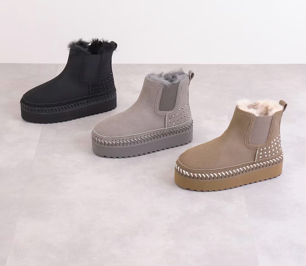 厚底でスタイルアップ効果抜群のフェイクムートンショートブーツです!