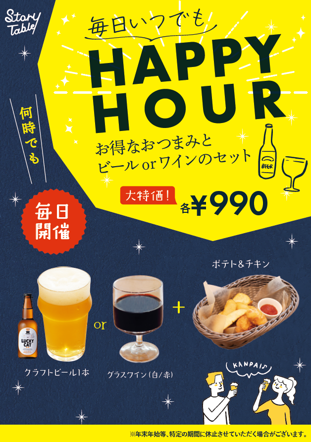 お得なおつまみとビールorワインのセットで990円(税込)!