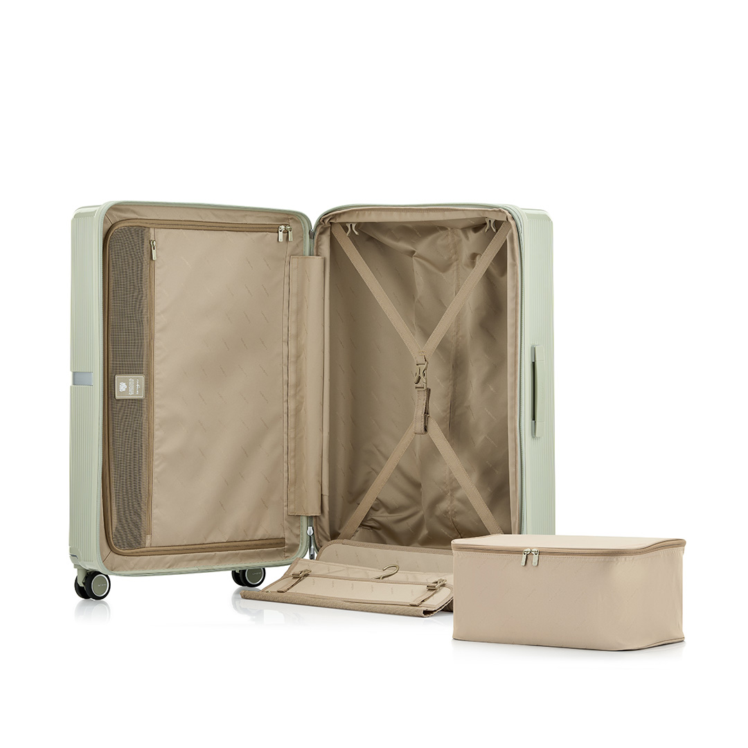 衣類などの整理に便利なパッキングキューブと操作性に優れたホイールを備え、旅を軽やかに彩ります。