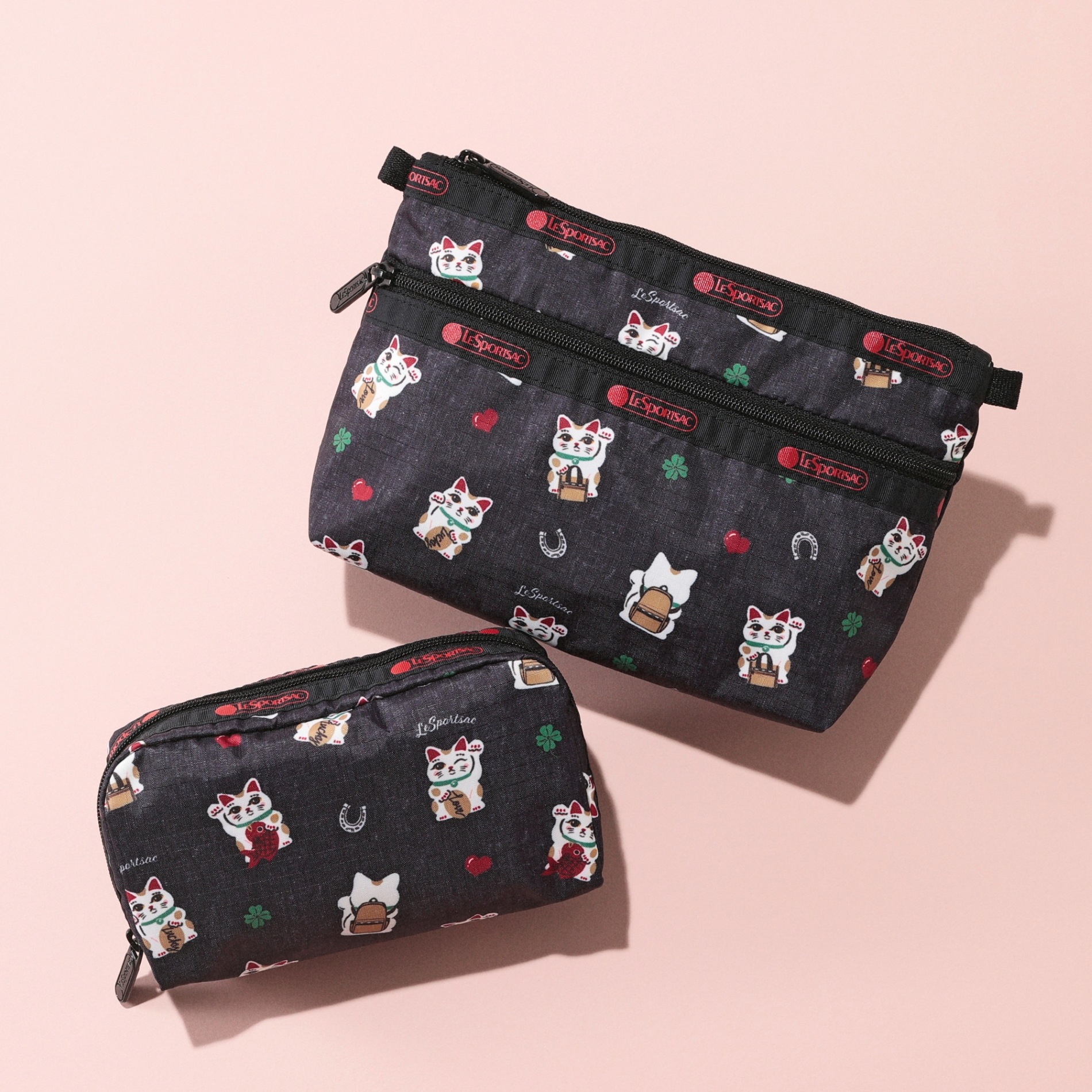 招き猫やクローバー、馬蹄、ハートなど、幸運を象徴するラッキーモチーフのデザイン。ポーチ限定のラインナップ。