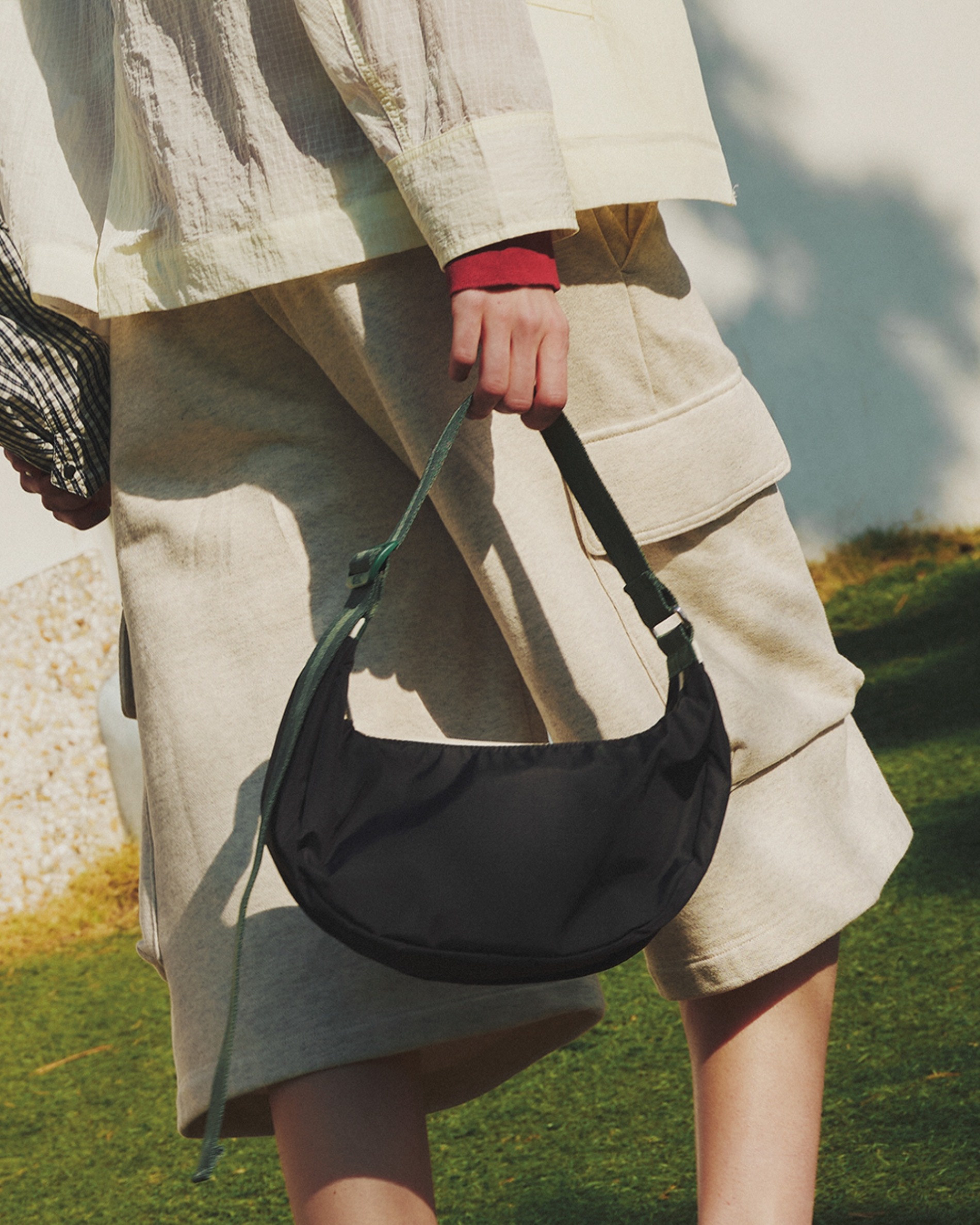 配色がアクセントになっているショルダーは、アジャスターで長さの調整が可能。シーンやスタイリングに合わせて、手持ちや肩掛け、クロスボディなど持ち方をカスタマイズできます。2サイズのハンモックバッグとビッグトートを展開。ホワイト/オレンジ、ネイビー/グリーン配色2カラーのラインナップ。