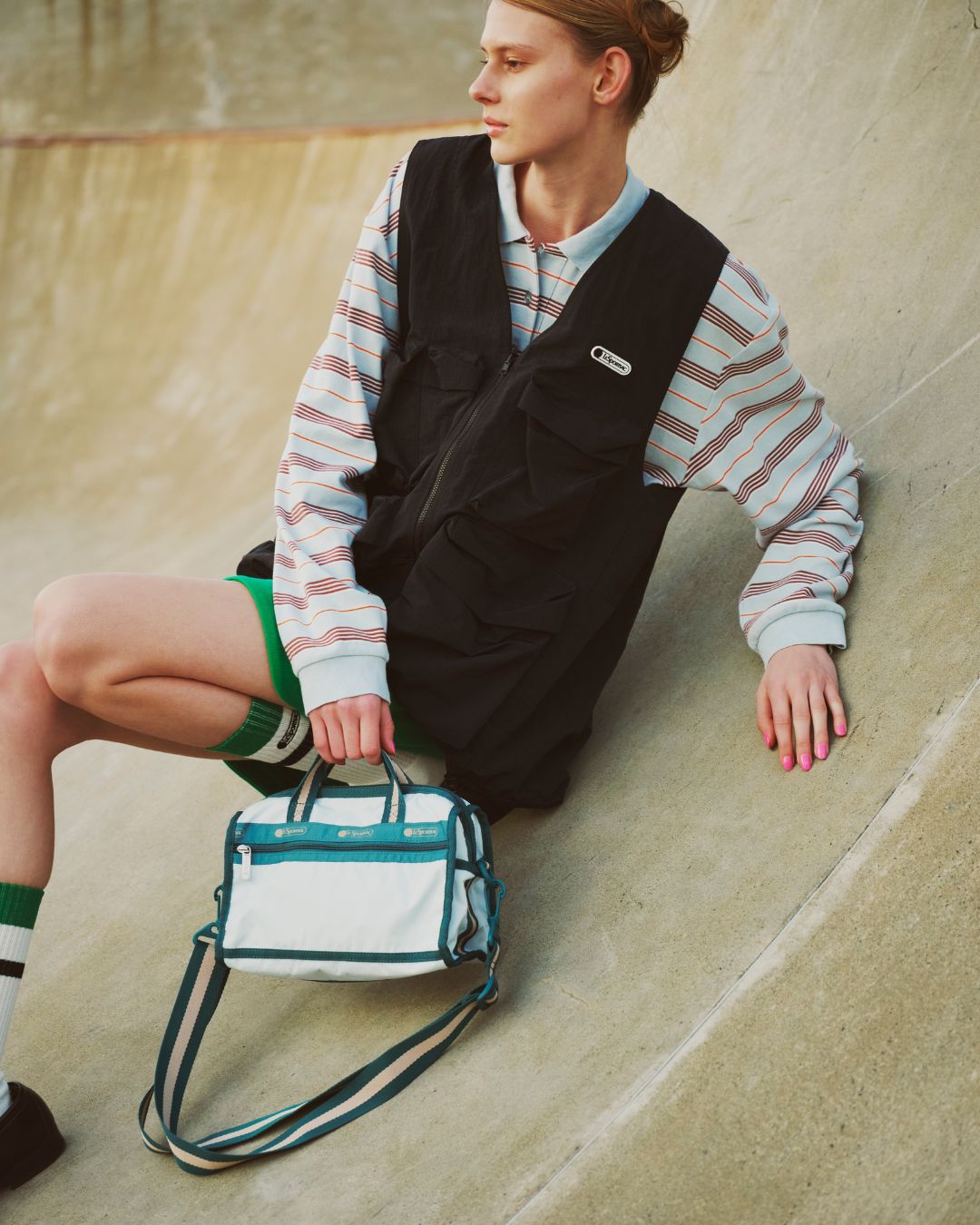 ブラック、オフホワイトのベーシックカラーに、春の新色として「ベージュ/ピンクライン」、「サックス/ベージュライン」のバイカラーが登場。トレンドのランドスケープバッグやボストンバッグ、バックパックなどバリエーション豊富にラインナップ。