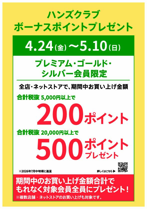- ハンズクラブ会員限定!ボーナスポイントキャンペーン!