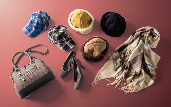 F マルチストール 5,390円(税込)/オフオンネックス 1F G チェック柄バッグ 11,340円(税込) H チェック柄パンプス 10,800円(税込)/アルテミスバイダイアナ 1F