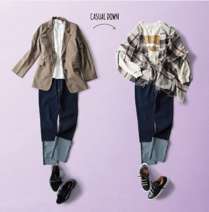左:TRテーラードJK 6,372円(税込) コットンレースBL/LS 3,780円(税込) CONE/CUFFUP 7,020円(税込) 17FWマニッシュシューズ 5,940円(税込)/ローリーズファーム 1F 右:マルチストール 5,390円(税込)/オフオンネックス 1F スウェット 4,320円(税込) CONE/CUFFUP 7,020円(税込)/ローリーズファーム 1F シューアクセサリー付スニーカー 9,612円(税込)/エービーシーマート グランドステージ 3F