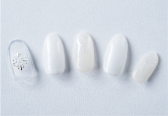 シンプルなホワイトベースで飾りすぎない、ママにピッタリなデザインのネイルです。