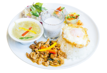 ピリッと辛いガパオと惣菜やデザートがセットに!ママも大満足の本格タイ料理です。