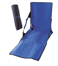 丸めて持ち運びできる便利な座椅子。バックルをはずせばクッションシートとしても使えます!