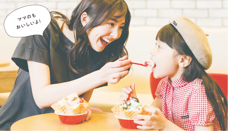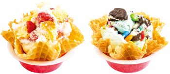 定番の「ショートケーキ」をコールド・ストーン・クリーマリー風にアレンジしたアイスクリームは年間で1番人気! お子さまには、カラフルなお菓子がたっぷり入ったアイスクリームも大人気!