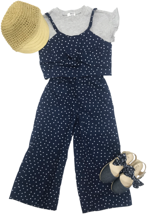 トロピカル柄のドッキングワンピースをメインに、夏らしくまとめました!