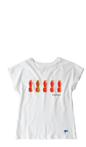 パイナップルプリントがかわいいTシャツ。ワンピースとの相性もバツグンです。