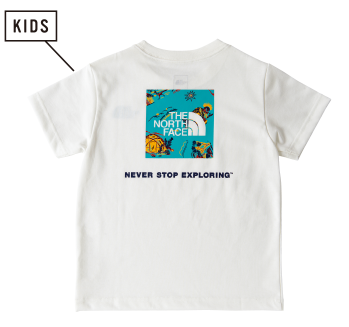 背中にプリントされた、2019年夏シーズンのノベルティ柄を使用したスクエアロゴがかわいい半そでTシャツです。