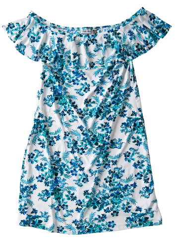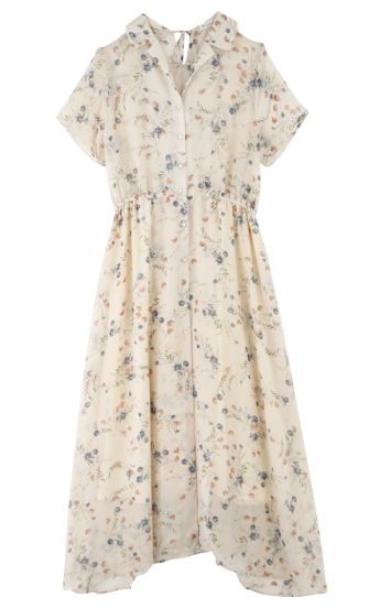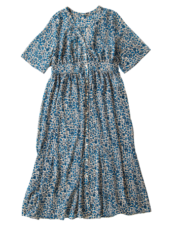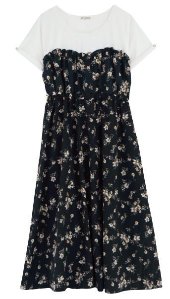 清涼感のあるカラーが夏らしい花柄ワンピース。 重ね着風のデザインで簡単にオシャレなコーデが完成します。