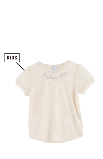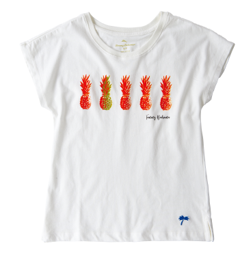 パイナップルプリントがかわいいTシャツ。ワンピースとの相性もバツグンです。