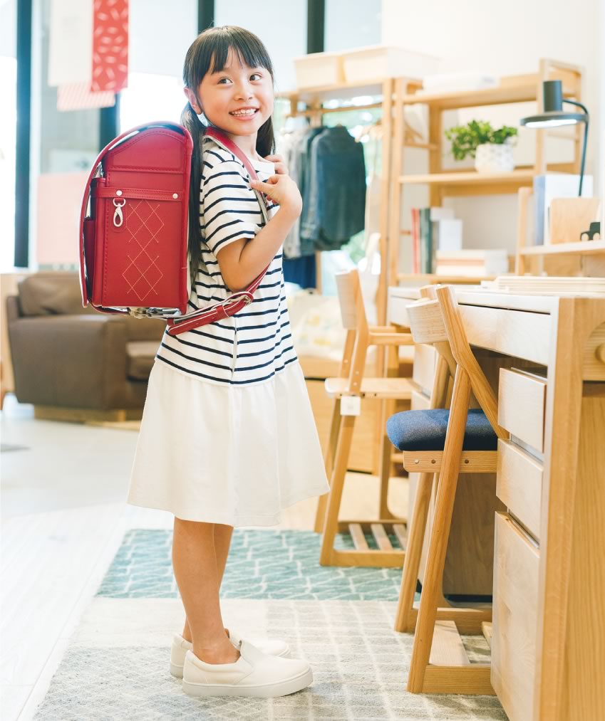 アーガイル模様のステッチが、スクールバッグに個性を。
