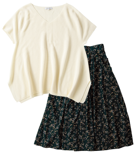 ビンテージ調のフラワー柄が特徴的なロングスカートは、歩くたびに裾が華やかに揺れる主役スカート。