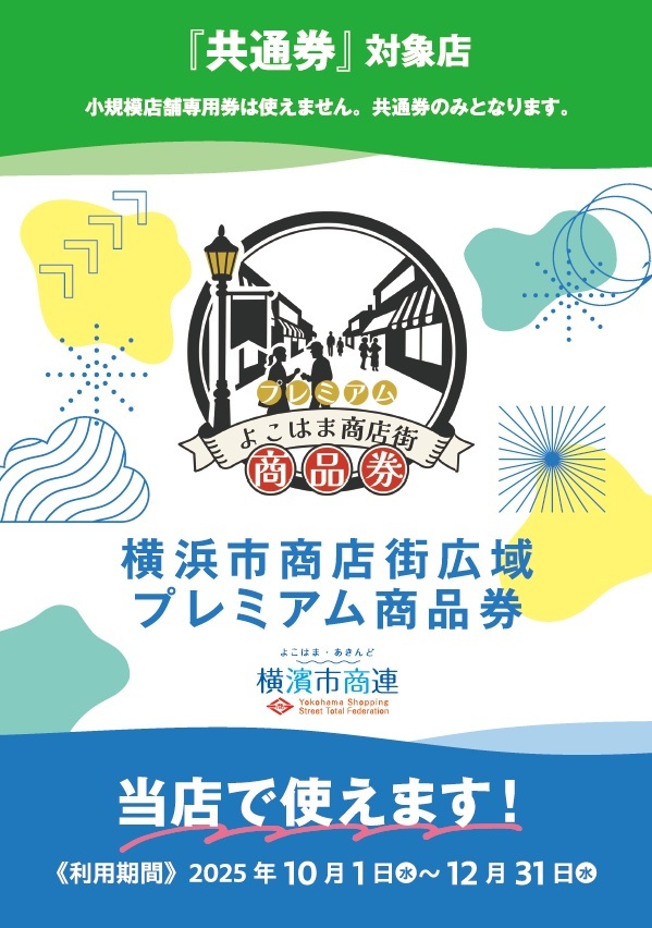- 【一部対象外店舗あり】横浜市商店街広域プレミアム商品券が利用できます