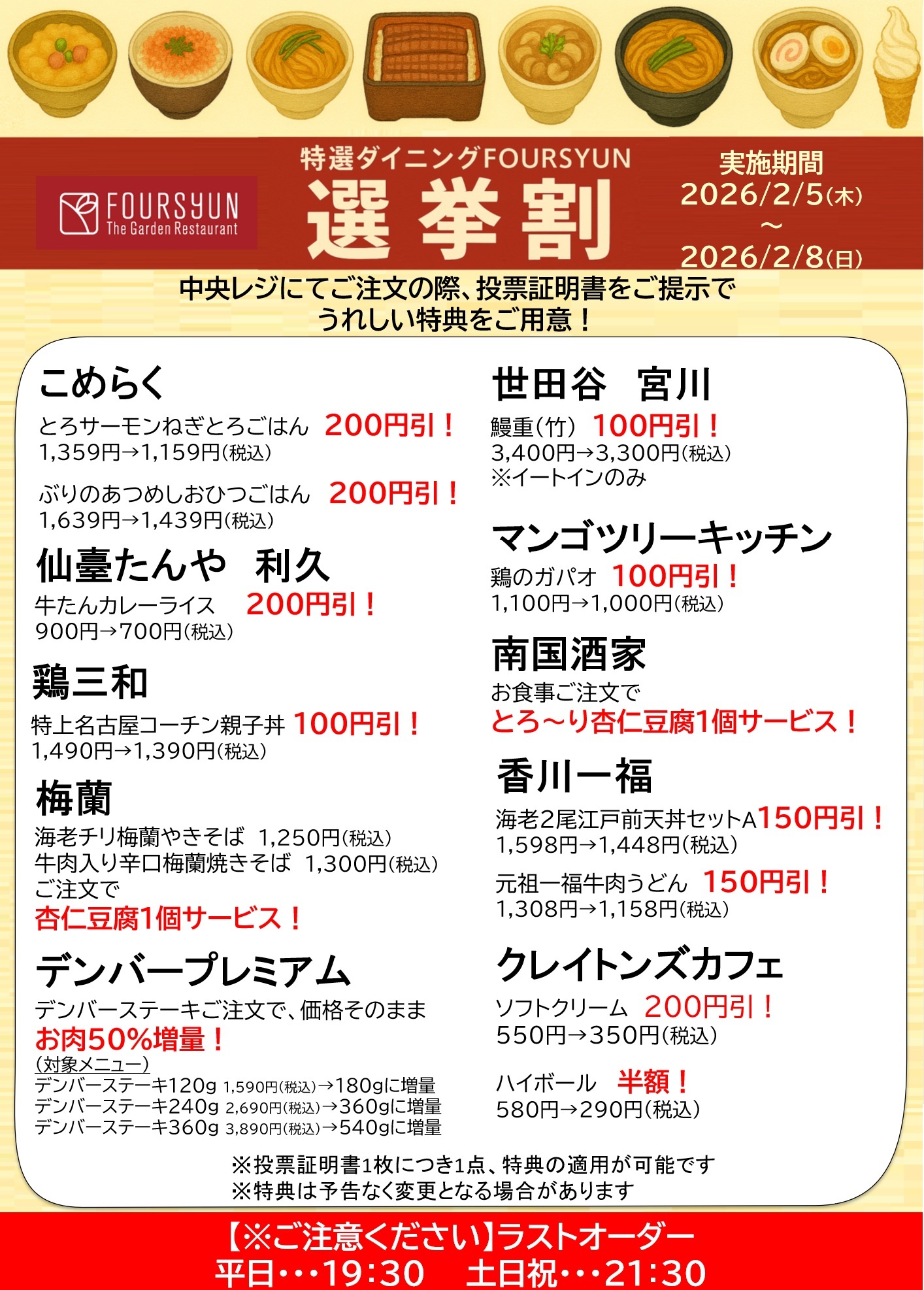 - 特選ダイニングFOURSYUN 選挙割開催!