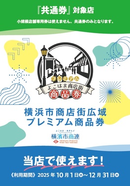【一部対象外店舗あり】横浜市商店街広域プレミアム商品券が利用できます