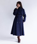 ハイネックとテーラード風のシルエットが上品な雰囲気を演出するロングコートです。